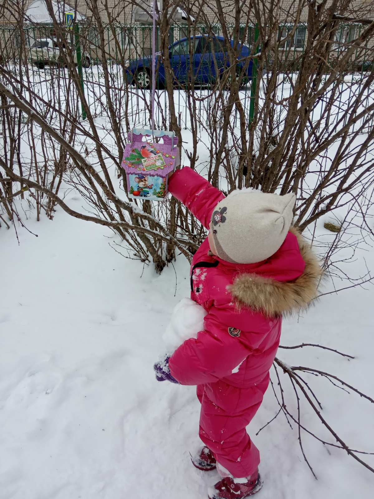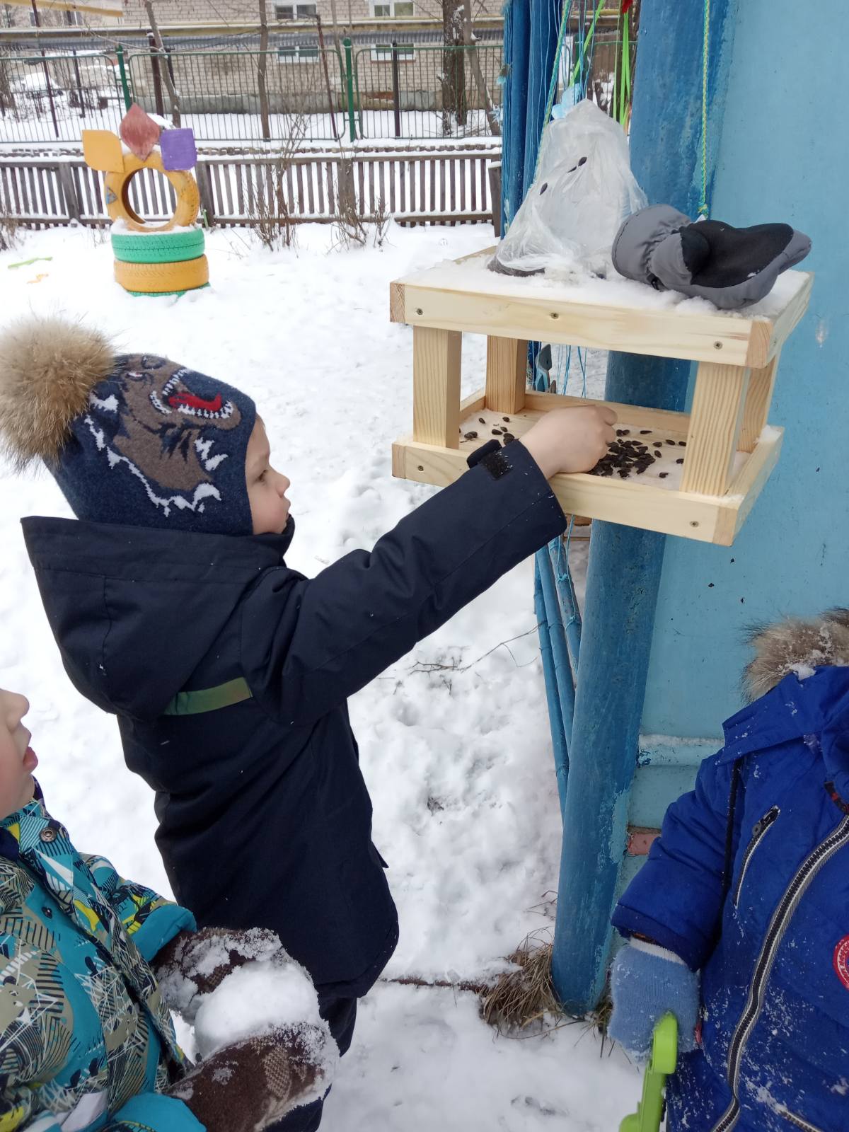 Февраль- очень тяжелый месяц для пернатых друзей, поэтому воспитанники группы № 4 "Солнышко" решили им помочь. Вместе с родителями дети изготовили кормушки, которые повесили на территории детского сада, принесли семечки, пшено и кусочки сала. Ежедневно во время прогулок дети угощают птиц принесёнными дарами.Подобная акция проводится ежегодно в нашем детском саду.
