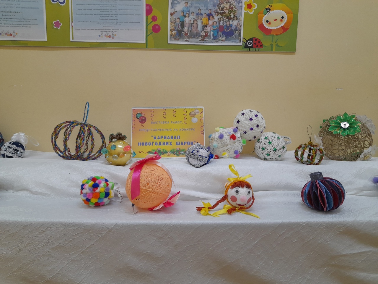В нашем детском саду проводился творческий конкурс КАРНАВАЛ Новогодних шаров. Целью конкурса является вовлечение в творческий процесс детей и их родителей по изготовлению авторских елочных игрушек.Таким образом, дети имеют возможность увидеть свою игрушку на елке и показать её своим родным. При этом дети испытывают чувство гордости, радости и причастности к предстоящему зимнему празднику. Удивительно, сколько таланта и фантазии проявили наши семьи, представив многообразие игрушечных шаров, выполненных из различных материалов. Все воспитанники, которые сделали своими руками поделки, были награждены грамотами.