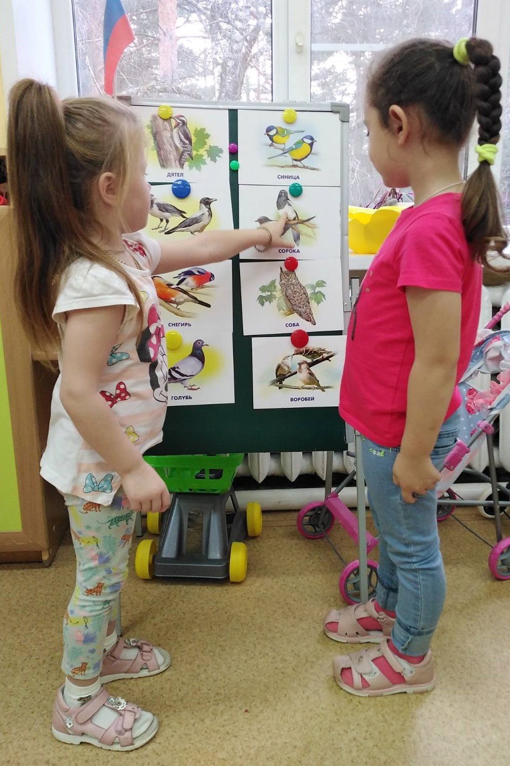 Дети группы "Теремок" вместе с воспитателем в рамках тематической недели "Перелетные и зимующие птицы" выяснили чем отличаются птицы от животных; почему некоторые птицы улетели в теплые края, а некоторые остались зимовать; слушали пение птиц в записи, играли в подвижные и дидактические игры. Воспитателем были организованы наблюдения за птицами на кормушке за окном и на прогулке. В группе появился макет с кормушкой. И еще много было интересного...