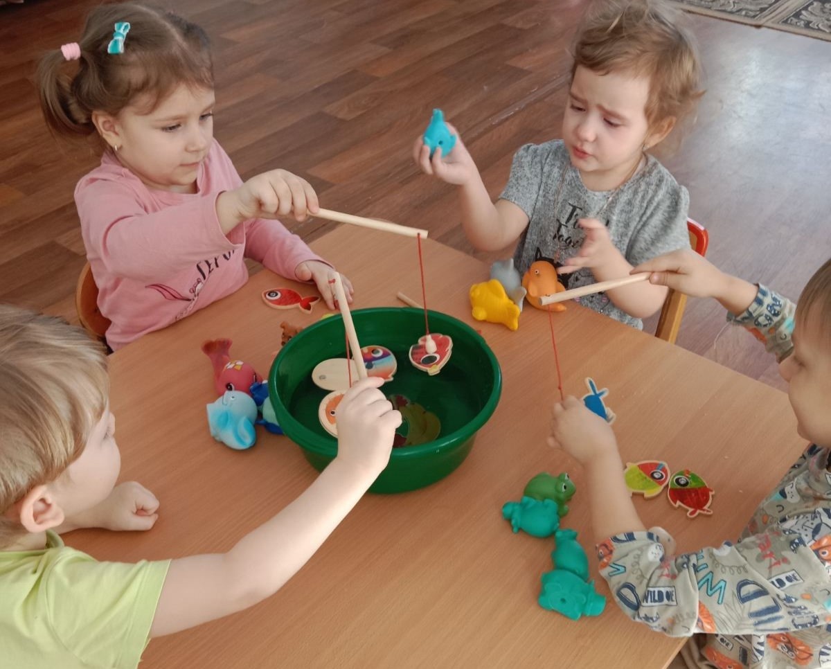 Знакомая детям игра "Рыбалка" стала ещё интересней, когда рыбки оказались в тазике с водой!
