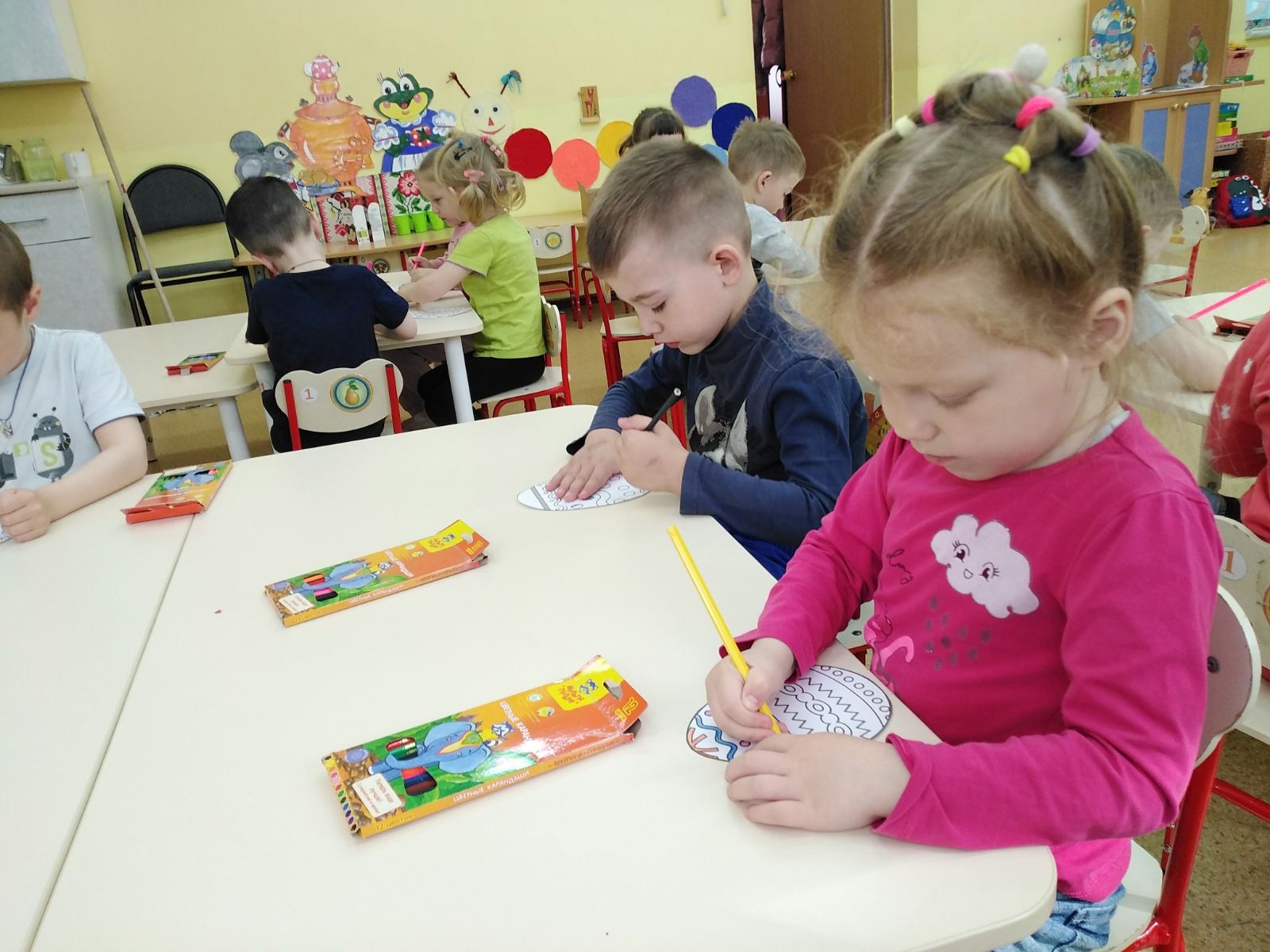 Дети узнали: почему пасхальные яйца называют писанками, и сами с удовольствием расписывали трафареты пасхальных яиц. Каждый ребенок очень старался! Получилось очень красиво!