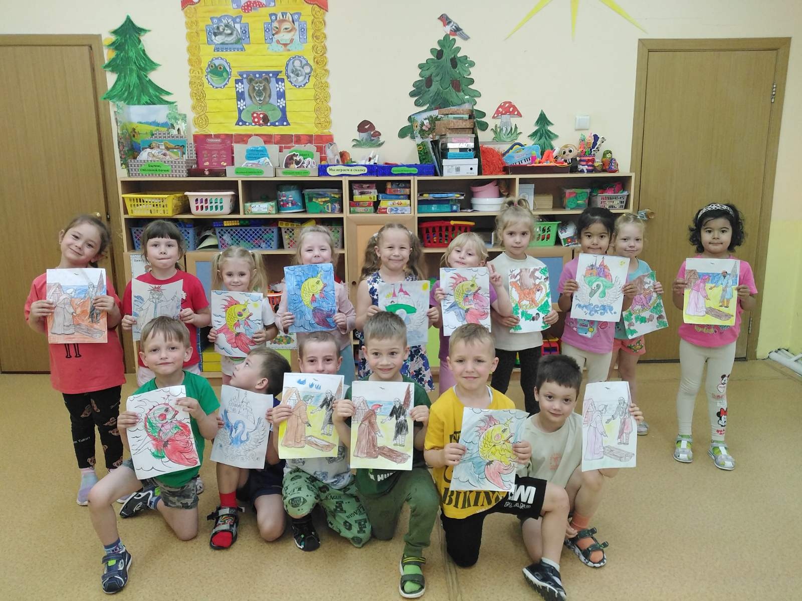 С дошкольниками была проведена беседа о поэте, которая сопровождалась презентацией. Дети с увлечением слушали рассказ воспитателя о детстве маленького Саши. Для них была подготовлена выставка книг, поэта. Дети подготовительной к школе группы показали драматизацию сценки из "Сказки о царе Салтане" и играли с детьми средней группы в игру "Сокол и Лебедушка" И конечно же, дети с большим желанием раскрашивали картинки с изображениями героев сказок А.С. Пушкина.