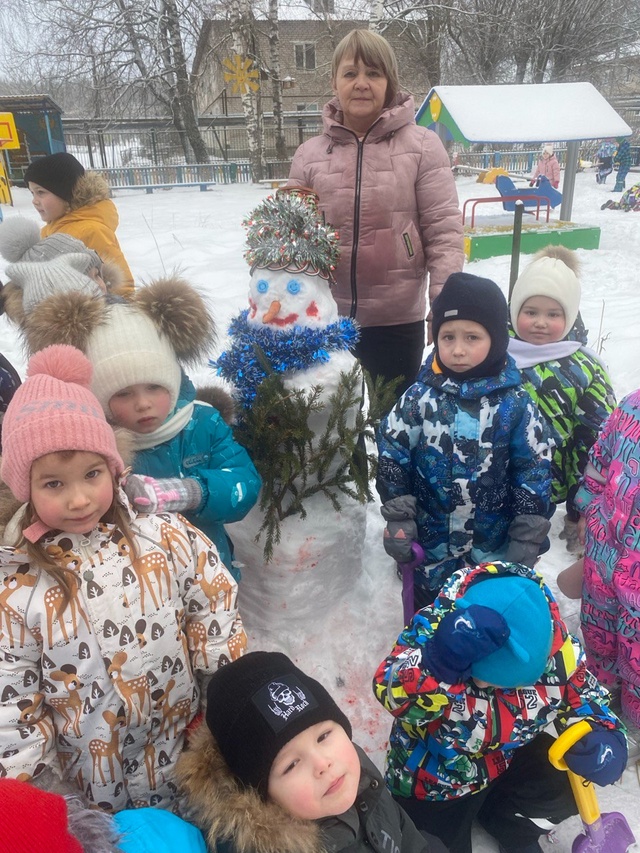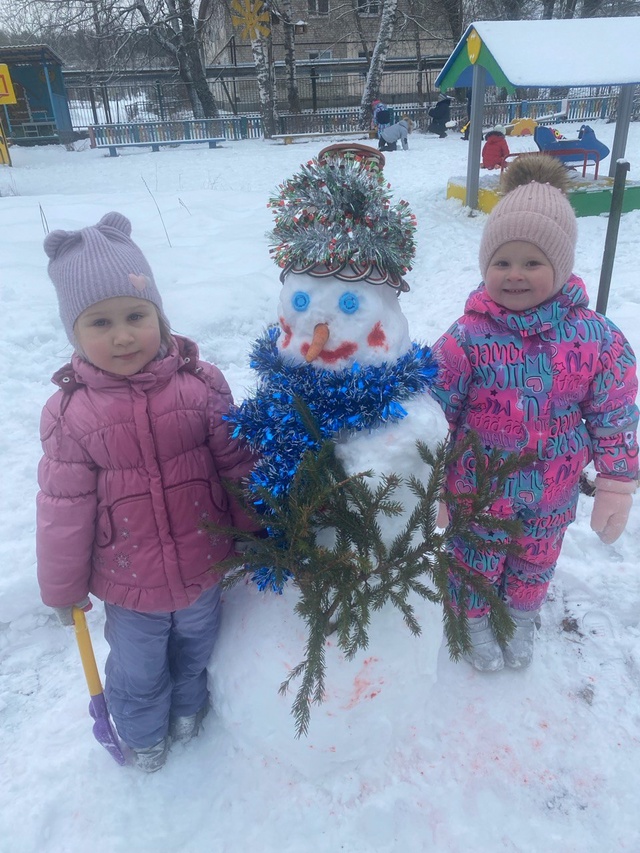 Вышли ребята из группы "Рябинка" и занялись важным делом.. Старались, катали снежные комки..