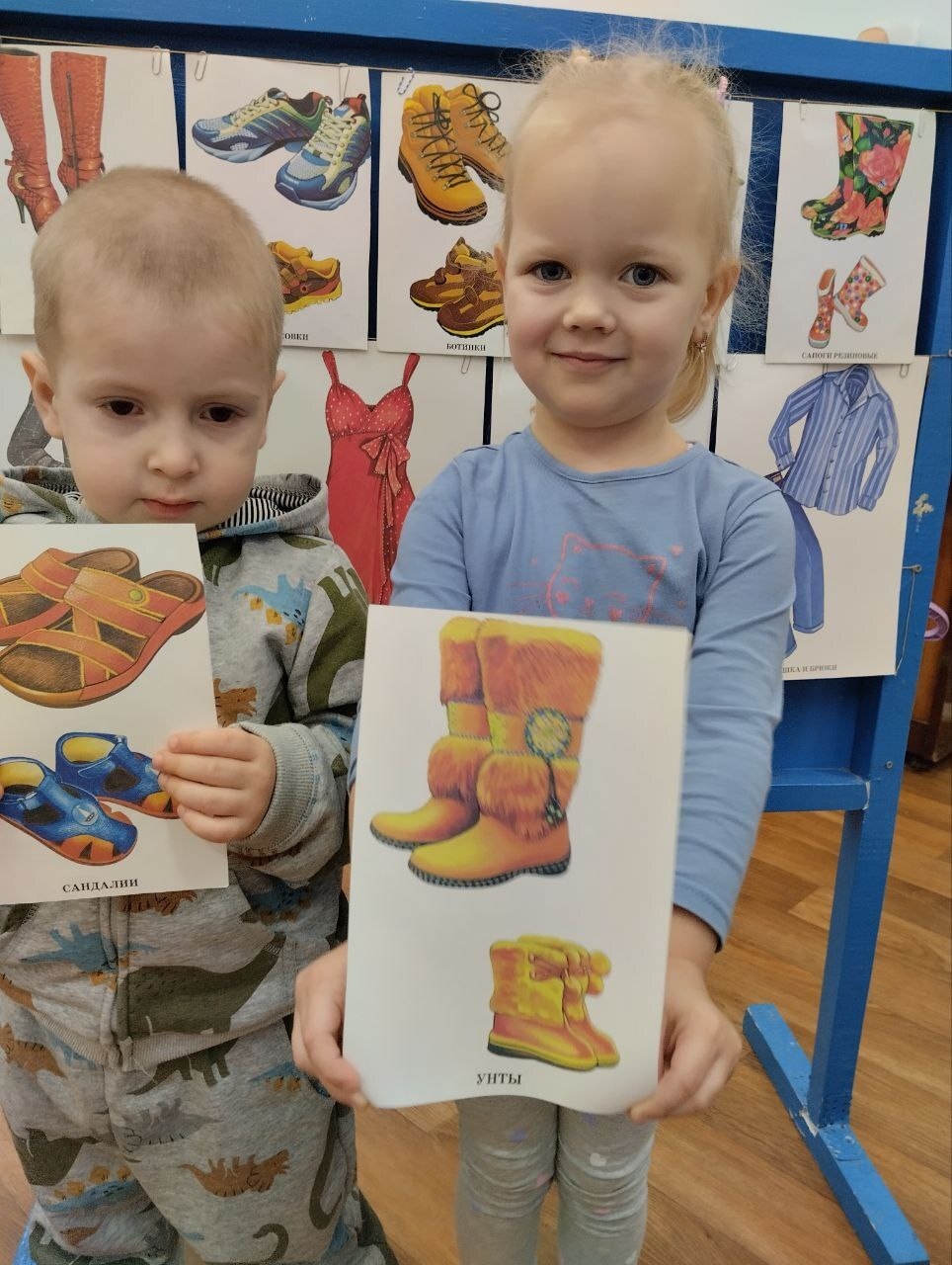 У ребят во второй младшей группе прошла неделя на тему " Одежда, обувь, головные уборы. " Дети с удовольствием рассматривали картинки, украшали платья для мамы на лепке , раскрашивали рубашки для папы на рисовании. А как они любят наряжаться! Настоящие супермодели!