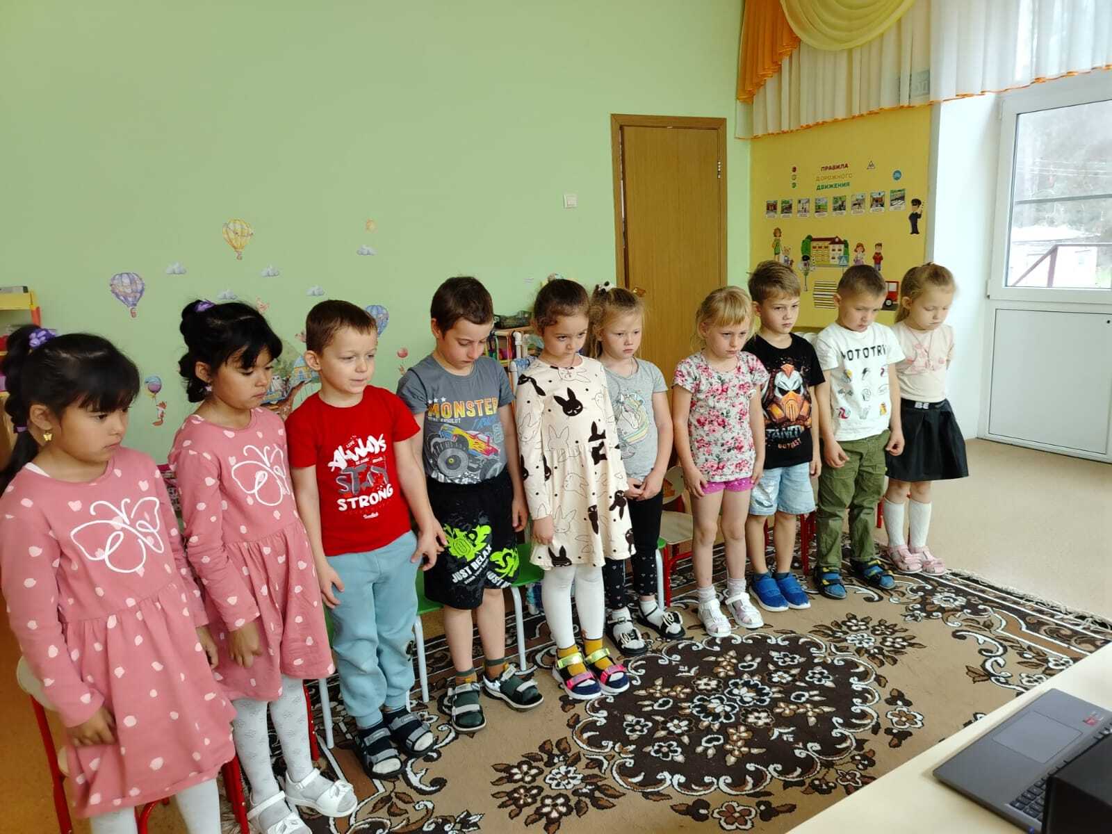 Воспитатель рассказала о своих родственниках, которые погибли в ВОВ. Дети почтили память погибших минутой молчания.
