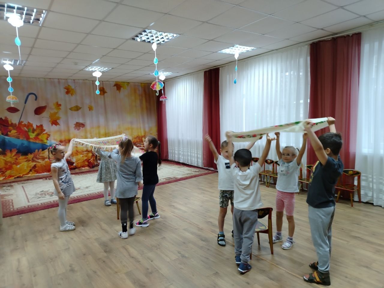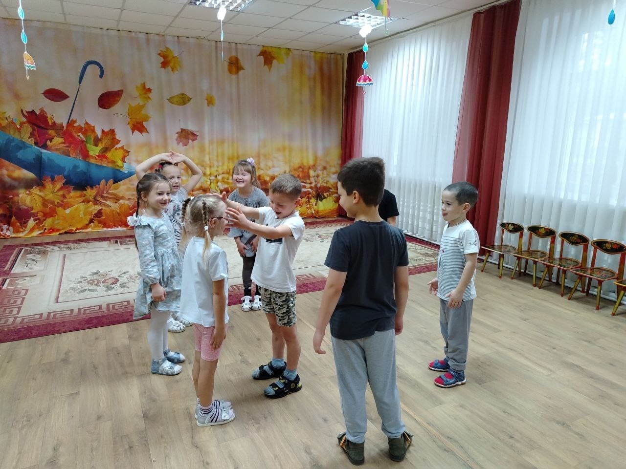 Дети подготовительной к школе группы знакомились с историей праздника, народами России, смотрели познавательные фильмы о разных народа, населяющих нашу страну, их обычаях, костюмах. С удовольствием слушали сказки народов России. Познакомились с народными играми: "Стадо" (русская), "Вумурт (Водяной) " (удмуртская), "Каюр и олени" (чукотская), "Не змай(Не тронь) " (казачья) и "Юрта" (башкирская).