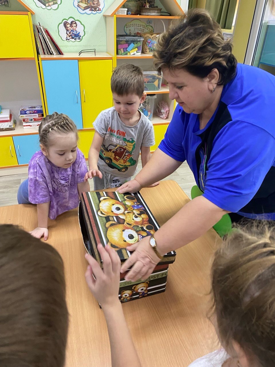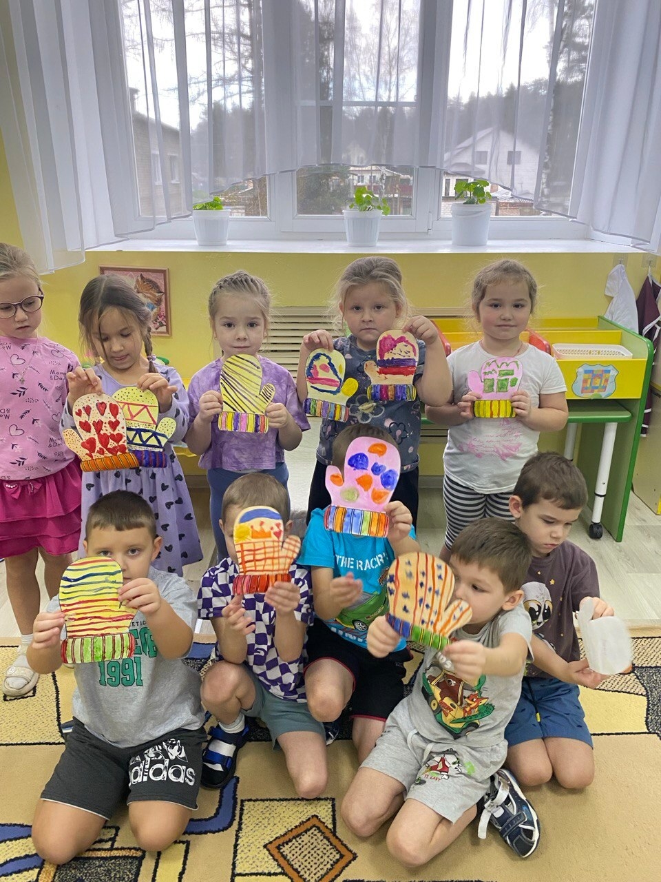 Ребята не оставили Деда Мороза без подарка.Они расписали красивыми узорами разноцветные рукавички.Поместили их в коробку и отправили почтой в Великий Устюг.